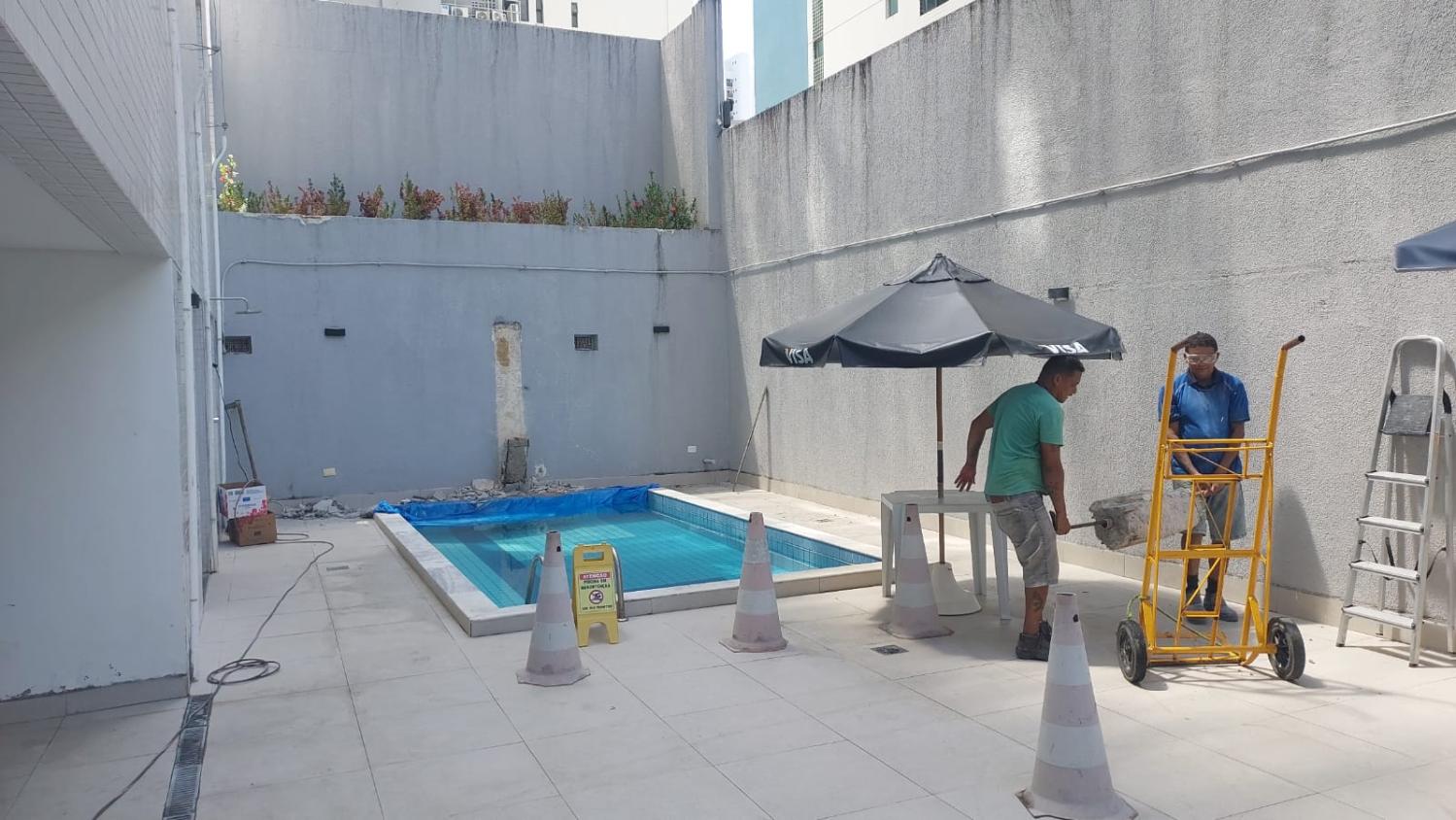 Edifício com fachada trocada, lazer com piscina, playground, salão de jogos e projetos de academia e mini-quadra.
